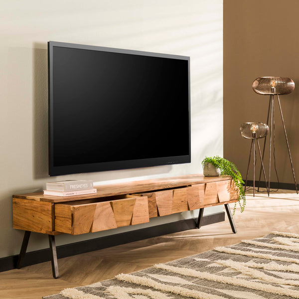 DEMN TV-Board TV-Möbel 3 Schubladen / Massiv Akazie