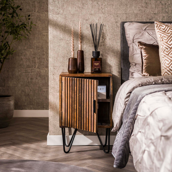 TWEAK Nachttisch 1 Tür Set aus 2 / Massiv Mango sand Metallfüße schwarz