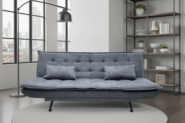 Modernes Schlafsofa STUDIO 200cm grau Flachgewebe 3-Sitzer mit Schlaffunktion Holzfüße