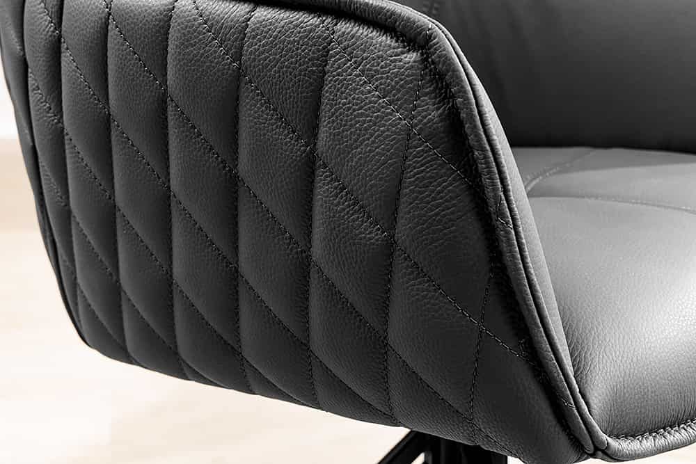 EUPHORIA Drehbarer Design Stuhl Echtleder Metallgestell mit Armlehne