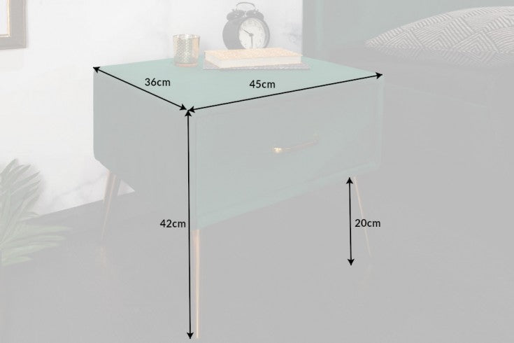 FAMOUS Retro Nachttisch 45cm Samt mit Schublade
