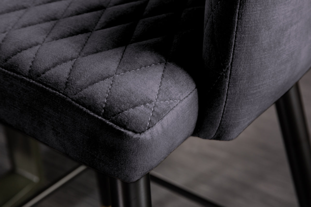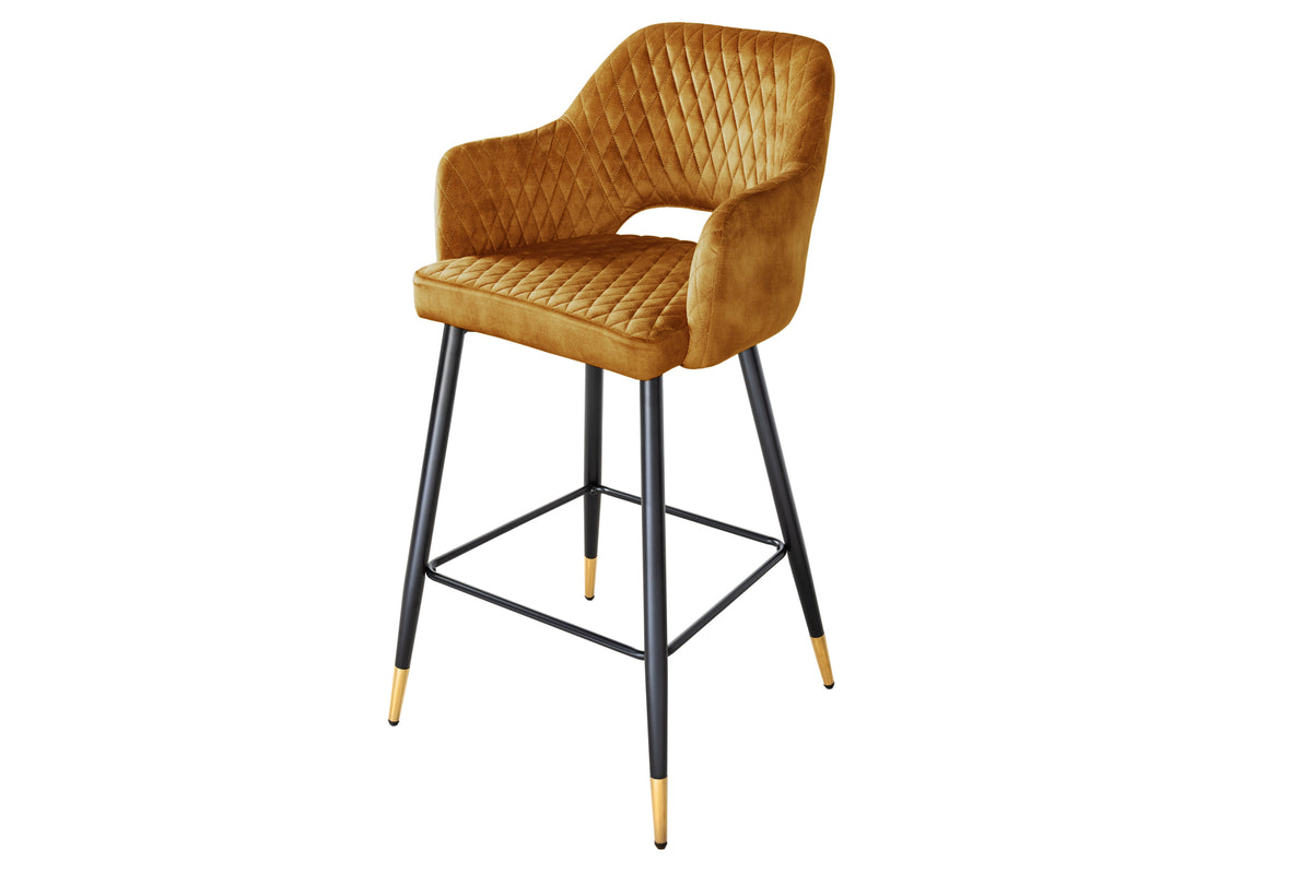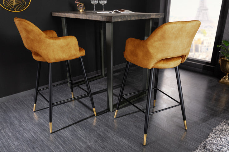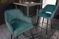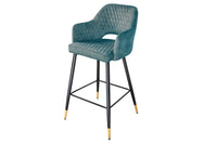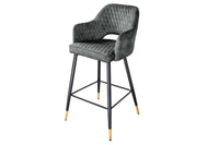 PARIS Design Barhocker Samt Ziersteppung Fußkappen gold mit Armlehnen