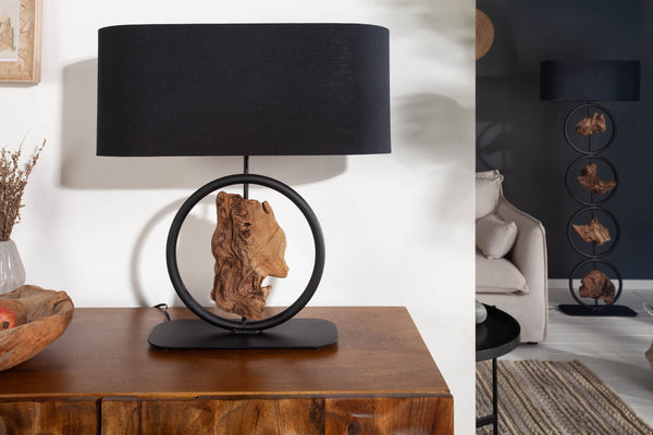 ELEMENTS Design Tischlampe 58cm schwarz Baumwollschirm Fuß mit Massivholz