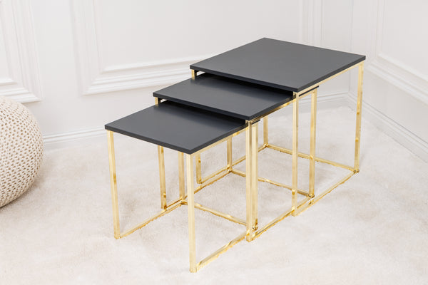 ELEMENTS Design Beistelltisch 3er Set 40cm matt anthrazit goldenes Metallgestell