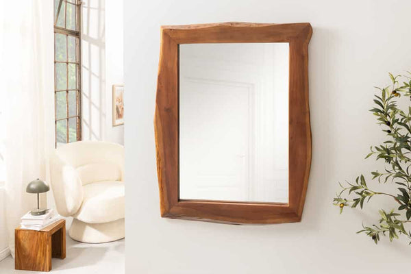 MAMMUT Massiver Spiegel 100cm braun Akazienholz Baumkante Wandspiegel