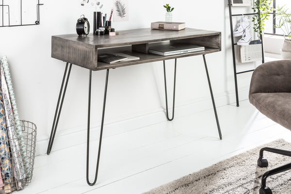 SCORPION Massiver Schreibtisch 100cm grau Mangoholz Hairpin Legs