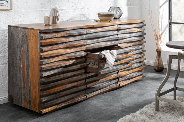 Sideboard WAVES Massives Sideboard Akazienholz - Handgefertigter aufwendige 3D