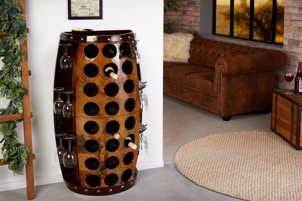 SEVEN SEAS Massivholz Weinfass 100cm Pinie Weinregal für 24 Flaschen