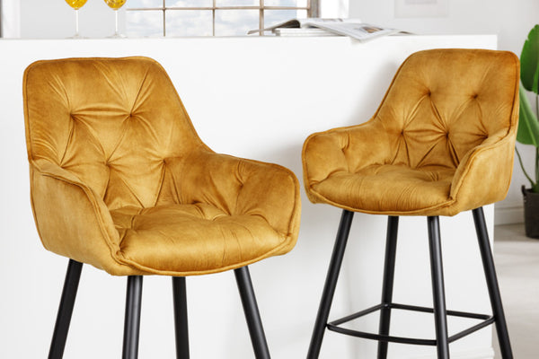 PORTLAND Drehbarer Retro Barhocker senfgelb Samt Barstuhl Hocker