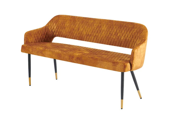 PARIS Design Sitzbank 160cm senfgelb Samt Retro Rückenlehne