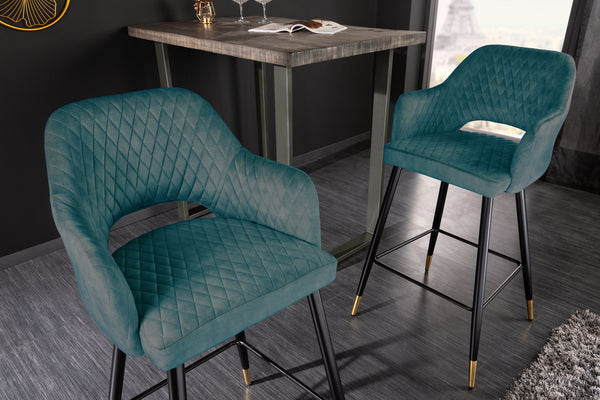 TURIN Edler Barhocker Samt mit Ziersteppung Barstuhl mit Armlehne
