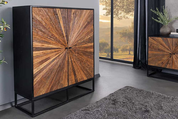Massives Highboard BARRACUDA 120cm Mangoholz mit Teakholz-Front