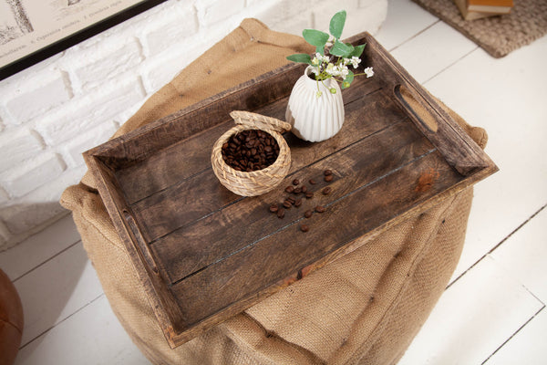 Massives Tablett 44x29cm Mangoholz antik Finish mit Tragegriffen