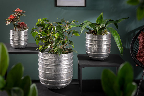 3er Set Blumentopf ORIENT 25/20/15cm Metall Hammerschlag Design