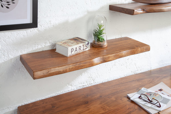 MAMMUT Massives Wandregal 80cm Sheesham Regalbrett mit Baumkante