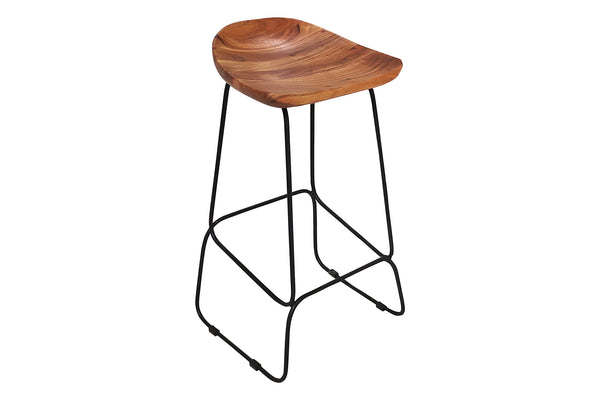 MAMMUT Massivholz Barhocker natur Akazie schwarzes Metallgestell mit Fußablage