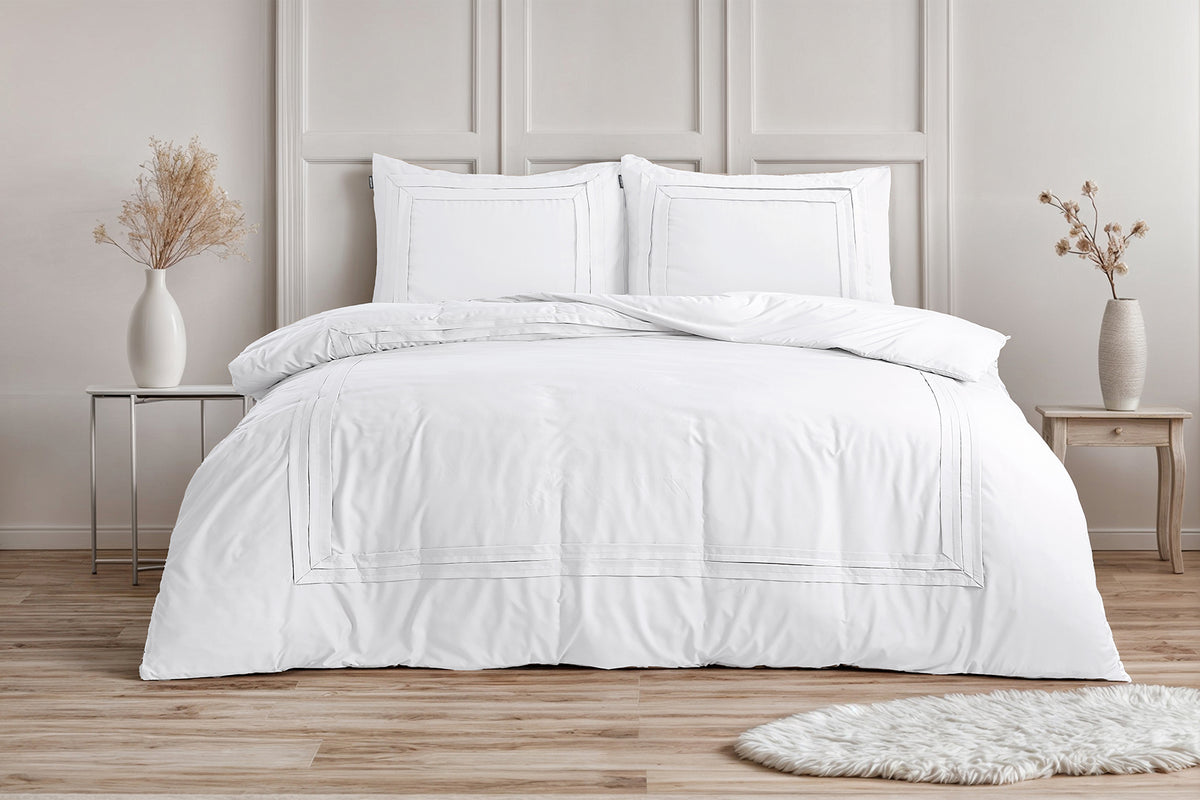 Mit einer großzügigen Länge von 220 cm passt der Bettbezug ideal für Decken mit einer Länge von 200 oder 220 cm. Die durchgehende Einsteckleiste mit stabilen Druckknöpfen hält Ihre Bettdecke zuverlässig an Ort und Stelle. Die passenden Kissenbezüge mit praktischem Hotelverschluss runden das Set funktional und stilvoll ab.