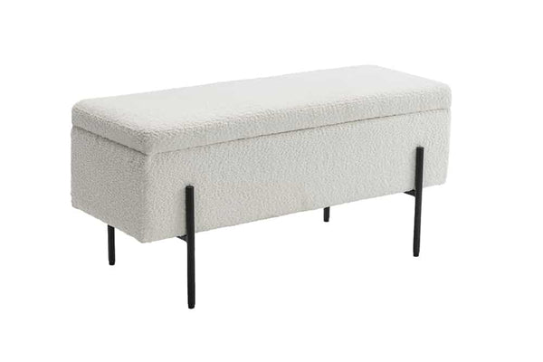 LOFT Moderne Truhenbank 100cm weiß Bouclé Sitzbank mit Stauraum gepolstert schwarz Metall