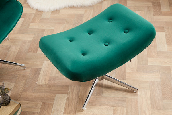 MR. LOUNGER Eleganter Hocker grau Samt mit Chromgestell