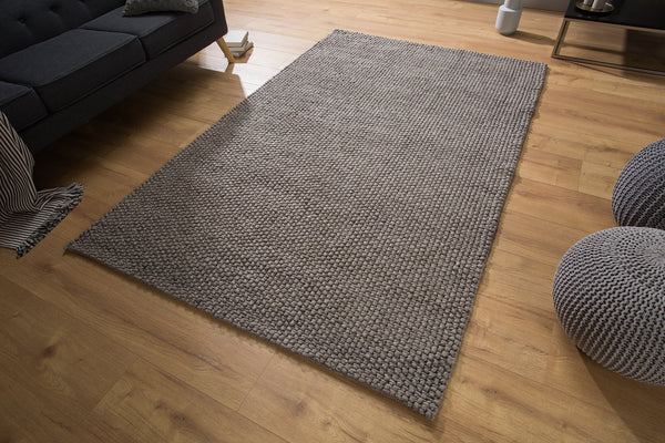 ORGANIC LIVING Handgewebter Schurwolle-Teppich 200x120cm grau Filz Steinoptik