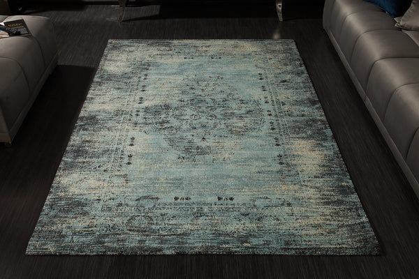 OLD MARRAKESCH Vintage Baumwoll-Teppich 240x160cm antik blau verwaschen Used Look