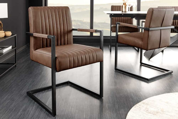 BIG ASTON Moderner Freischwinger Armlehnenstuhl Echtleder Federkern Metall