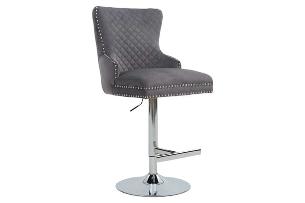 CASTLE DELUXE Höhenverstellbarer Barstuhl grau Samt silber Edelstahl Löwenkopf