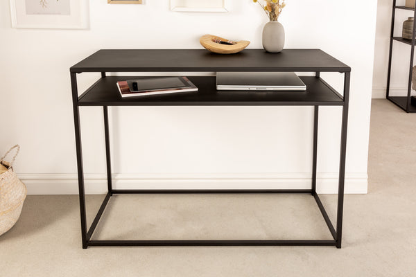 DURA STEEL Industrial console table 120cm black metal TV shelf with two shelves
