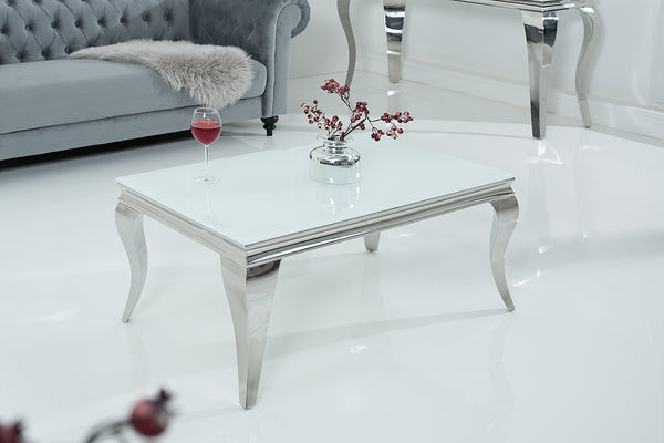 MODERN BAROCK Eleganter Couchtisch 100cm silber mit weißem Opalglas