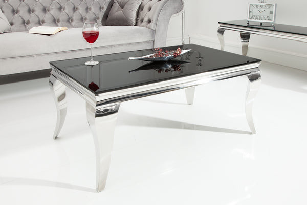 MODERN BAROCK Eleganter Couchtisch 100cm silber mit schwarzem Opalglas