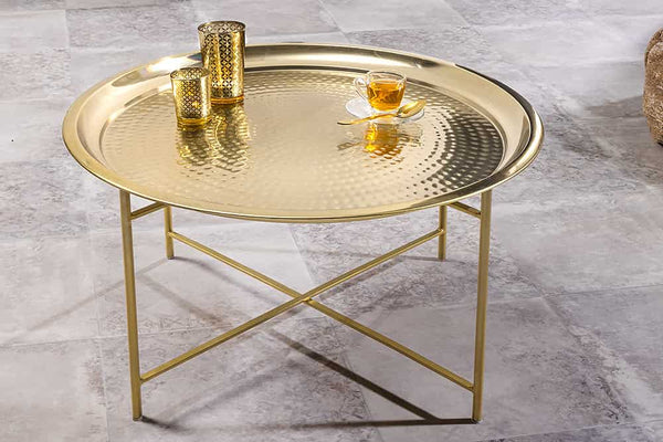 ORIENT Runder Couchtisch 70cm messing gold abnehmbares Tablett klappbar Hammerschlag Design