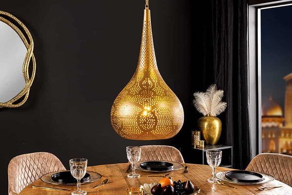 ORIENT LIVING Handgefertigte Hängelampe 50cm gold Eisen Tropfenform