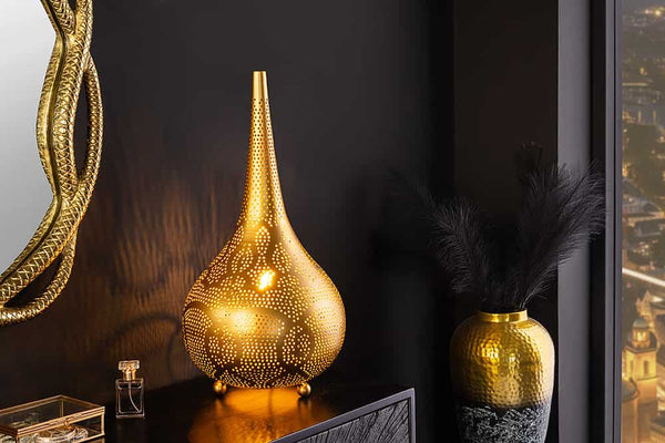ORIENT LIVING Handgefertigte Stehlampe 50cm gold Eisen Tropfenform