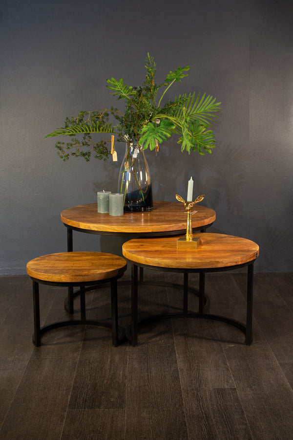 OSKAR Industrial Couchtisch 3er Set Mangoholz