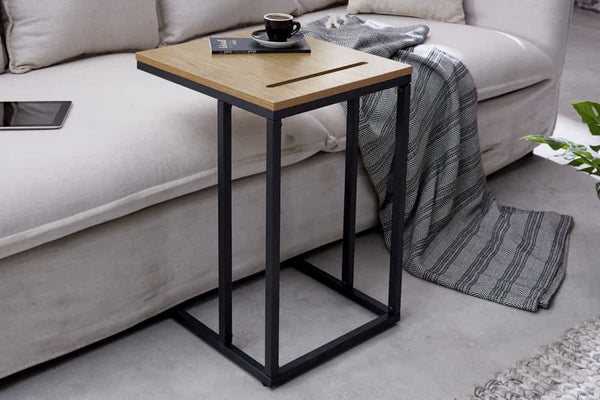 SCANDINAVIA Massivholz Beistelltisch 45cm natur Wildeiche Metall schwarz Laptoptisch