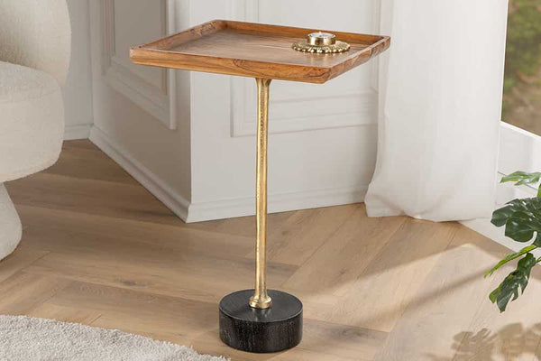 TRAYFUL Design Beistelltisch 55cm natur Akazie Massivholz schwarzer Marmorfuß gold Metall