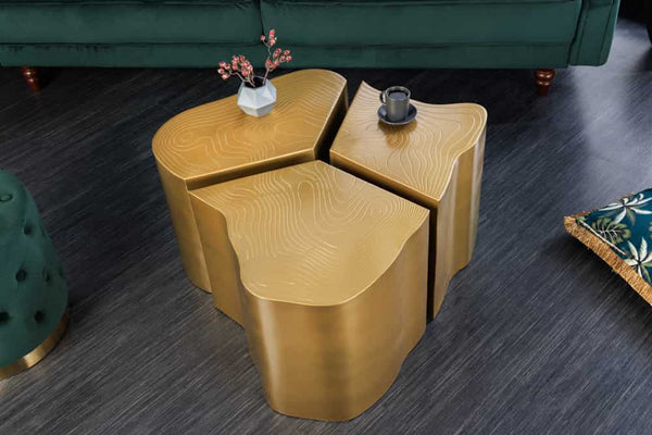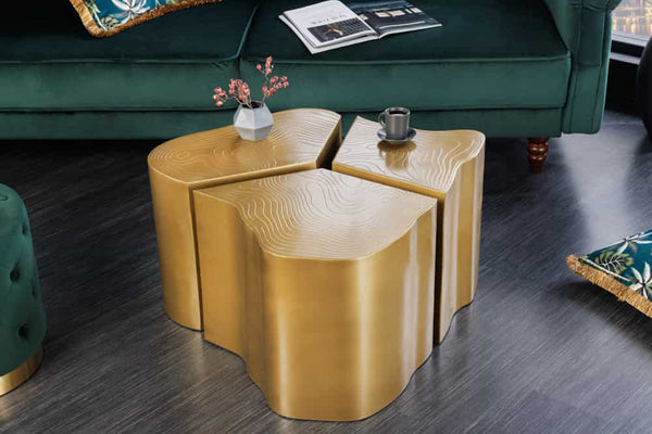 ORGANIC Design 3er Set Beistelltisch 80cm messing Metall Baumstamm Couchtisch handmade