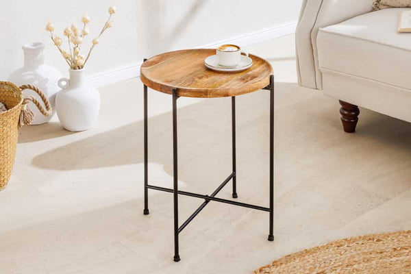 TRAYFUL Runder Beistelltisch 50cm natur Mangoholz klappbar abnehmbares Tablett