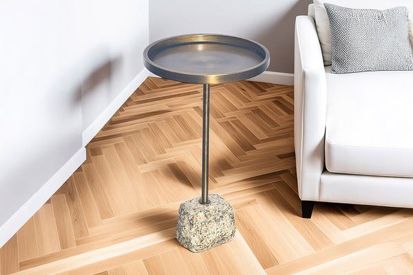 TRAYFUL Handgefertigter Beistelltisch 60cm messing antik Eisen natur Marmorfuß