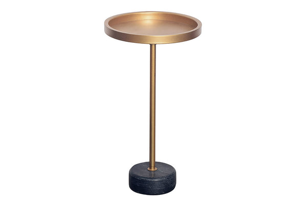 TRAYFUL Runder Beistelltisch 60cm gold Eisen schwarzer Marmorfuß handmade