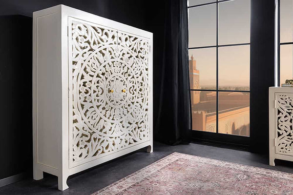 SCORPION Solid highboard 120cm brown mango wood elaborate 3D carvings
