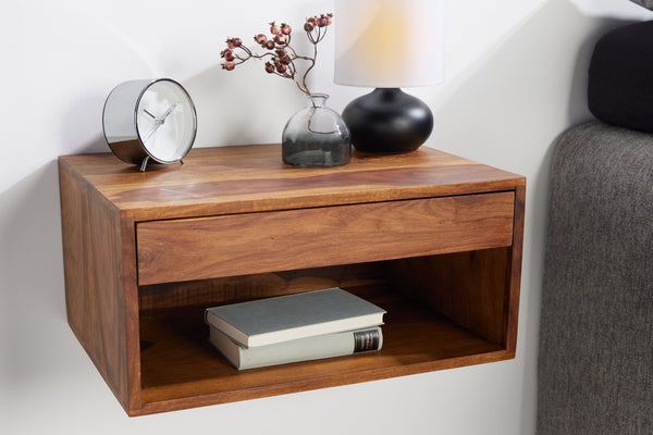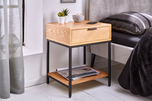 ELEMENTS Industrial bedside table 40cm oak side table with drawer