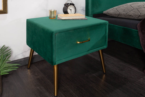 FAMOUS retro bedside table 45cm emerald green velvet with drawer