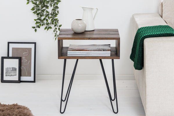 SCORPION Handcrafted side table 40cm weathered acacia bedside table hairpin legs
