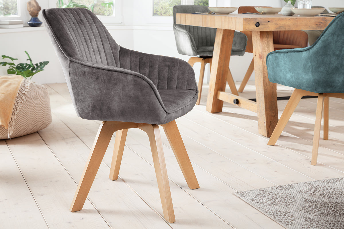 Drehbarer Stuhl LIVORNO Samt mit Armlehne gepolstert Buchenholz