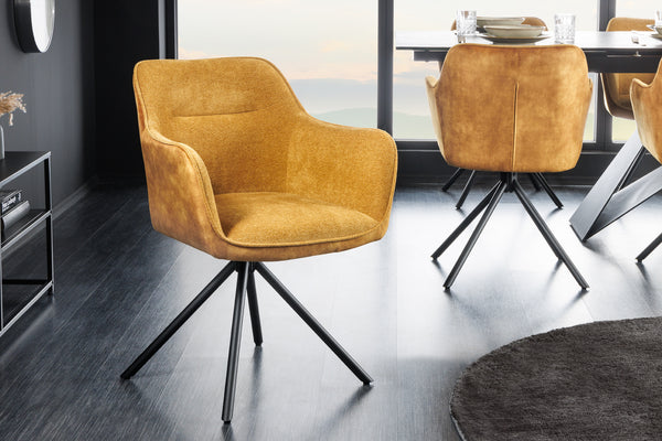 VERONA Drehbarer Stuhl Samt Strukturstoff mit Armlehne Metallbeine schwarz