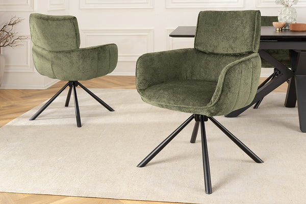 UNIQUE Drehbarer Retro Stuhl Chenille schwarzes Metallgestell mit Armlehne