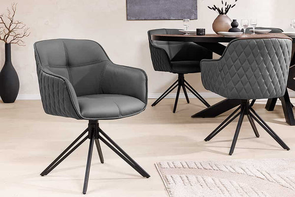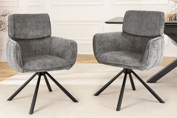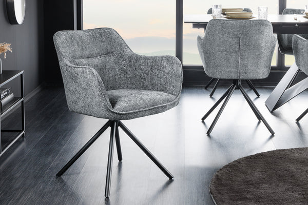 UNIQUE Drehbarer Retro Stuhl Chenille schwarzes Metallgestell mit Armlehne