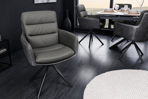EUPHORIA Drehbarer Design Stuhl Echtleder Metallgestell mit Armlehne