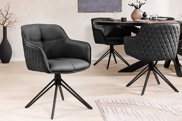 EUPHORIA Drehbarer Design Stuhl Echtleder Metallgestell mit Armlehne
